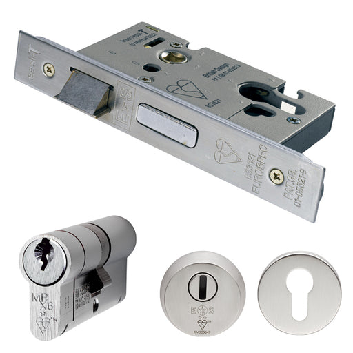 Eurospec Product Information Euro Profile BS Cylinder Double Sashlock - Complete Set BS Sashlock 64mm and 76mm versions. The latchbolt has the Easi...