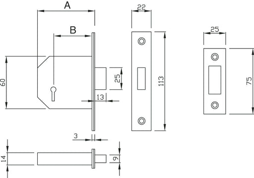 View full detailsGRIDLOCK Mortice Dead Lock 3 Lever G11