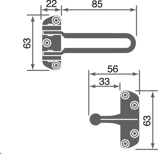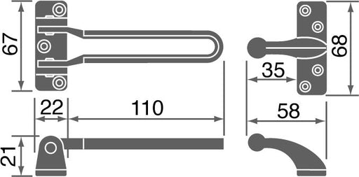Bary Door Guard Restrictor Product Information Bary door restrictor Limits the opening of doors Supplied with screws Line drawing : see gallery