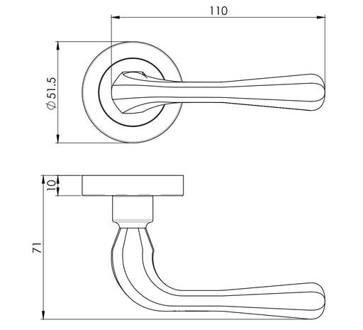 Manital AQ3 APOLLO Lever on Round Rose Lever on Round Rose Concealed Fix 2 Part Screw-on-Rose Dimensions (mm): Rose: 51.5 Dia. Rose Thickness: 10 P...