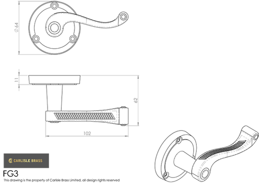 Carlisle Brass FG3 GEORGIAN Lever on Round Rose Lever on Round Rose Face Fix Dimensions (mm): Rose: 64 Dia. Rose Thickness: 11 Projection: 63 Lever...