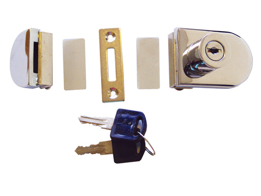 BARY Glass Door Lock Product Information Usage: Chrome plated glass door lock Suitable for glass up to 9mm thick Set comprises of lock - c/w 2 key...