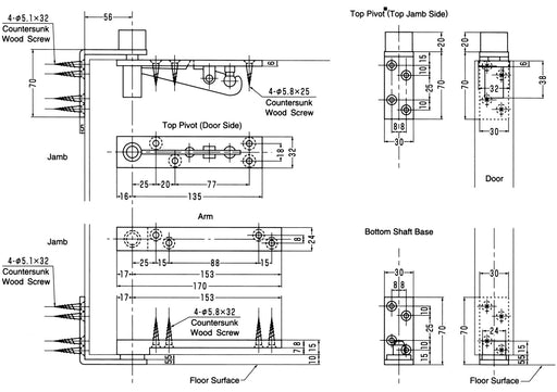 BARY® Bottom Bearing Pivot C-9-C Usage: High frequency commercial doorsets Material: Steel Finish: Satin Stainless Steel Fixings: Wood screws Note:...
