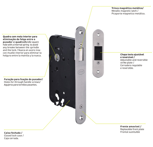 AGB Revolution XT Euro Cylinder Mortice Lock with Magnetic Deadbolt Enamel Brass Description A magnetic flush-mounted latch / Euro Cylinder lock, ...
