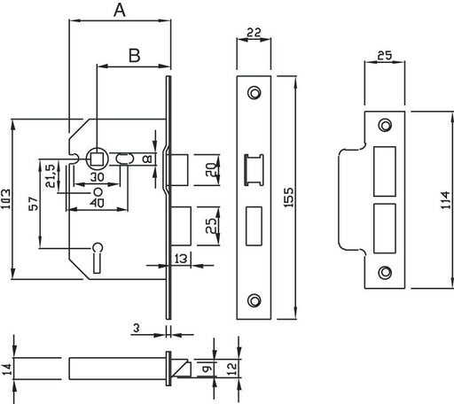 GRIDLOCK Mortice 3 Lever Sash Lock G5 Profile: Square CE Certified Fire Rated Complies to relevant EN standards Latch is reversible Size (mm) ...