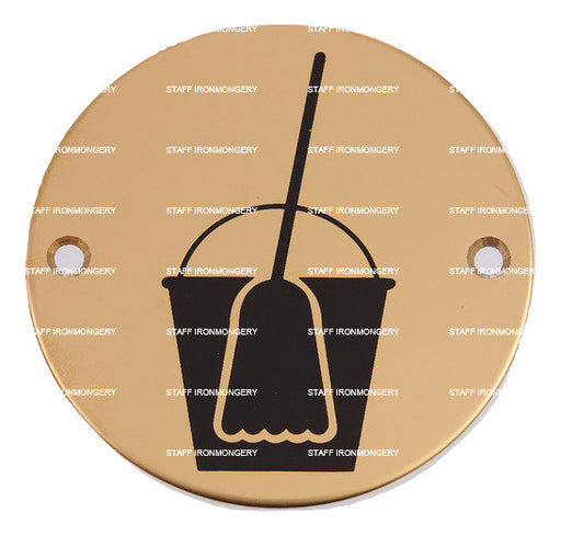 Bary Clean (Mop and Bucket) Sign Polished Brass Product Information Use: Commercial high use areas Dimensions: 76mm disc Fixing: wood screws (m...