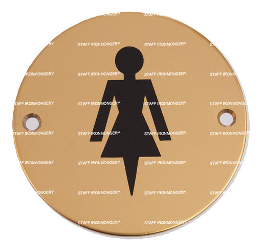 Bary Female Washroom Sign Polished Brass Product Information Use: Commercial high use areas Dimensions: 76mm disc Fixing: wood screws (matching...