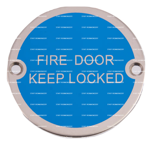 Bary Fire Door Keep Locked Sign Polished Satin Stainless Product Information Use: Commercial high use areas Dimensions: 76mm disc Fixing: wood s...