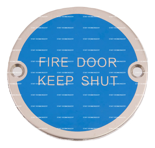 Bary Fire Door Keep Shut Sign Polished Satin Stainless Product Information Use: Commercial high use areas Dimensions: 76mm disc Fixing: wood scr...