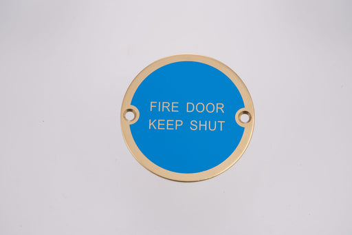 Bary Fire Door Keep Shut Sign Polished Brass