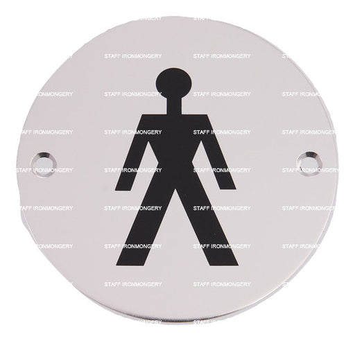 Bary Male Bathroom Sign Polished Satin Stainless Product Information Use: Commercial high use areas Dimensions: 76mm disc Fixing: wood screws (m...