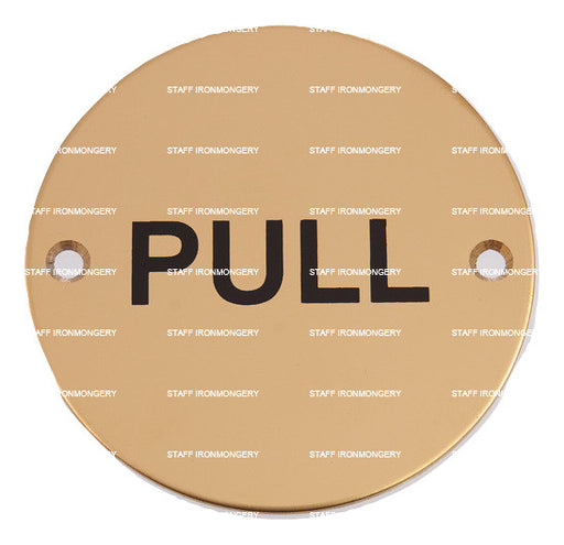 Bary Pull Indicator Sign Polished Brass Product Information Use: Commercial high use areas Dimensions: 76mm disc Fixing: wood screws (matching ...