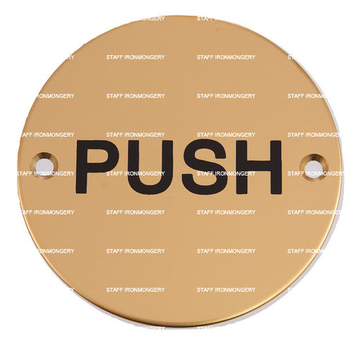 Bary Push Indicator Sign Polished Brass Product Information Use: Commercial high use areas Dimensions: 76mm disc Fixing: wood screws (matching ...