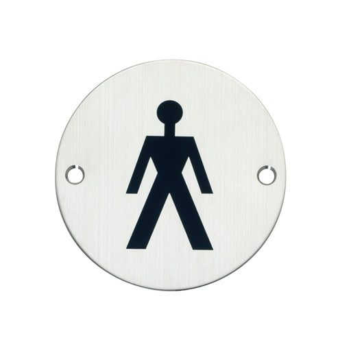 Bary Male Toilet Sign Aluminium Product Information Use: Commercial high use areas Dimensions: 76mm disc Fixing: wood screws (matching screws su...