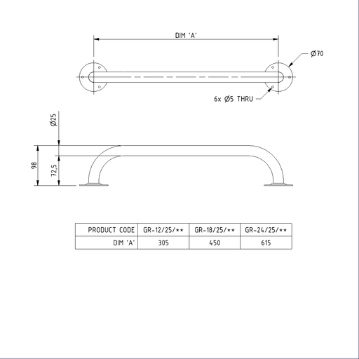Round Flange Steel Grab Rail Description : Robust mild steel construction Durable epoxy coated finish Available Finishes: White RAL 9016 Avail...